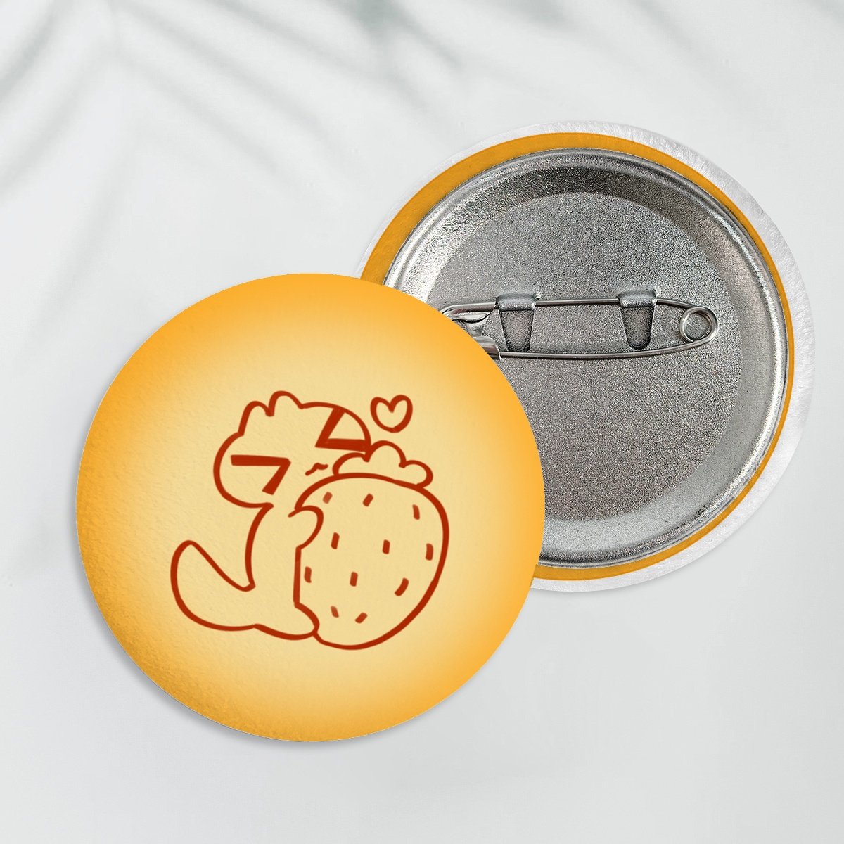 This is a plush pin back button pre-order for Kuro with a strawberry.
